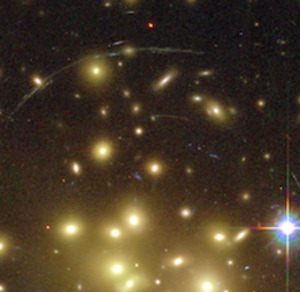 Cúmulo de galaxias Abell 1698. Las imágenes en forma de arco son galaxias distantes distorsionadas por el efecto de lente gravitacional (NASA)