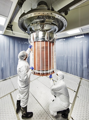 Cientificos ensamblando la camara de proyección temporal XENON1T (Foto: ©Enrico Sacchetti, XENON-Collaboration)