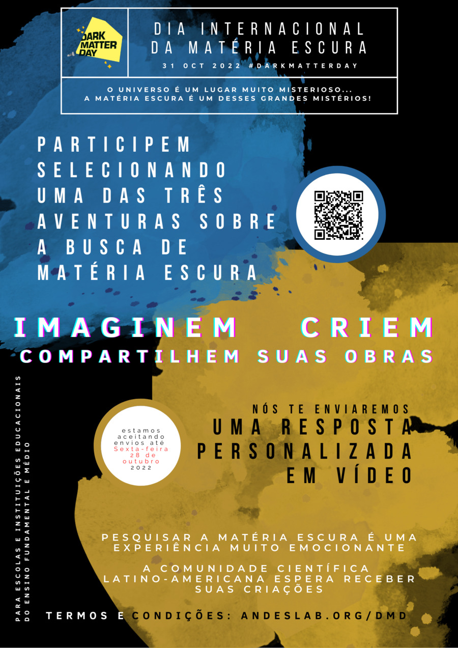 Na Argentina, desde a coordenação do Laboratório Subterrâneo ANDES, em conjunto com o Laboratório de Detecção de Radiação e Partículas do Centro Atômico Bariloche e Instituto Internacional de Estudios Avanzados (ICAS, ICIFI, UNSAM); no Brasil, desde o Instituto de Física da Universide Federal do Rio de Janeiro e Centro Brasileiro de Pesquisas Físicas (CBPF) temos o prazer de convida-lhes para as comemorações pelo Dia Internacional da Matéria Escura (31 de Outubro 2022).
